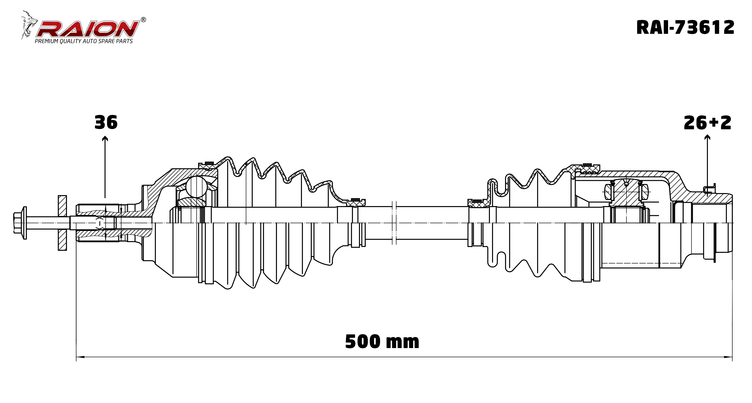 AKS KOMPLE SAG (36*500*28)- MAZDA 3 BK14 1.6cc MT 04-09 / MAZDA 3 BK14 1.6cc AT 06-09